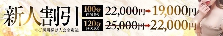 - 新人割引 100分 指名あり22000円→ 19000円!!