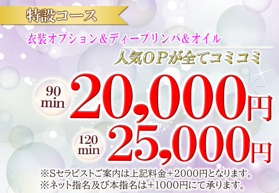 - 特設コース 衣装オプション&ディープリンパ&オイル 人気OPが全てコミコミ