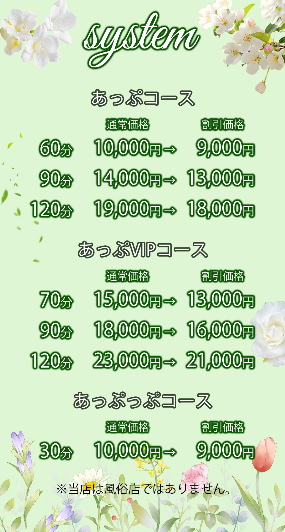 新規オープンキャンペーン 特別価格(オールタイム) 90分 10000円