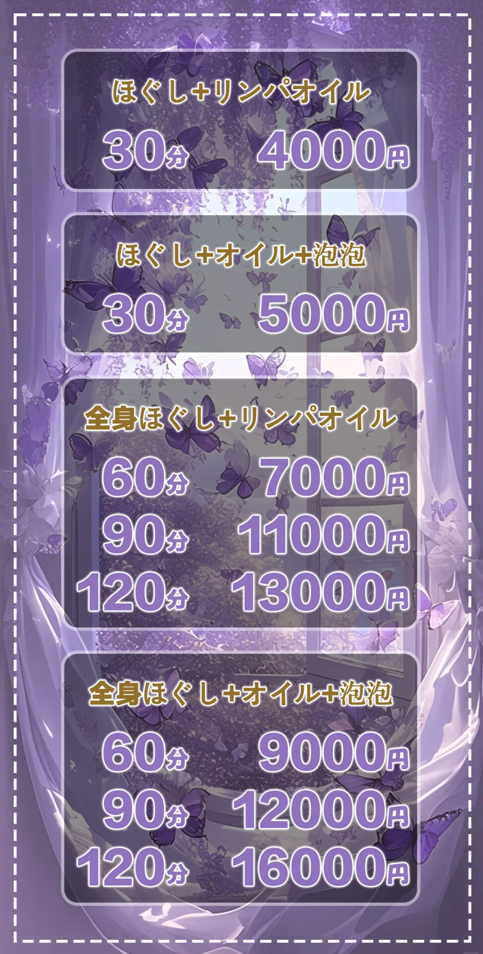週末はお客が多いから平日に来てと言われて平日に行きました。マッサージ中に電話や新規のお客の対応をしていたけどきちんとその分の時間延長はありました。