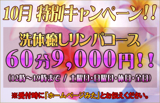 - キャンペーン 洗体癒しリンパコース 60分9,000円!!