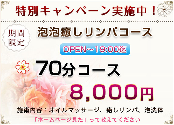 - 特別キャンペーン実施中! 泡癒しリンパが 19時まで