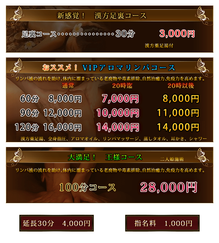 当店ならではの手技と厳選したアロマオイルを用いた極上の施術で、心身ともに軽やかになる至福のひとときをお届けします。