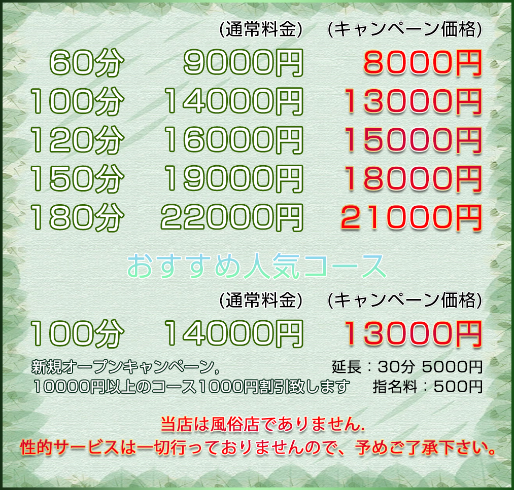 - 新規オープンキャンペーン 10000以上のコース 1000円割引!!!!