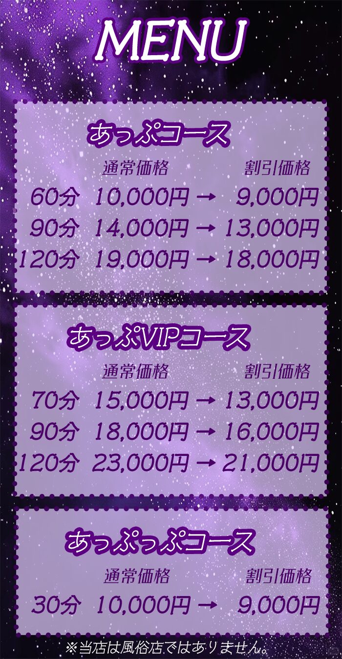 - 新規オープンキャンペーン 特別価格(オールタイム) 90分10000円