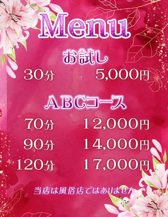 日々の疲れを抱える皆様へ、可憐で心優しいセラピストが、癒しと安らぎの世界へとご案内いたします。身体に配慮した丁寧な施術で、疲労やストレスをしっかりと解消。心身ともに軽やかさを取り戻していただけます。