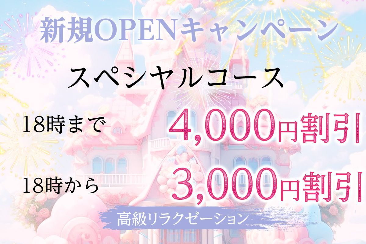 - 新規OPENキャンペーン スペシヤルコース 18時まで 4,000円割引