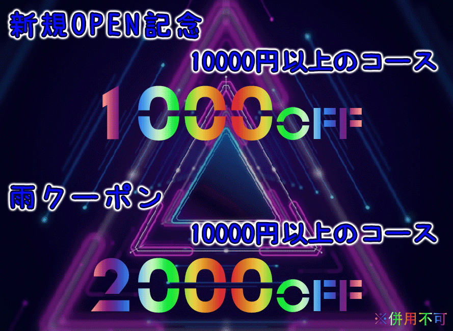 - 新規OPEN記念 10000円以上のコース 1000円割引!!