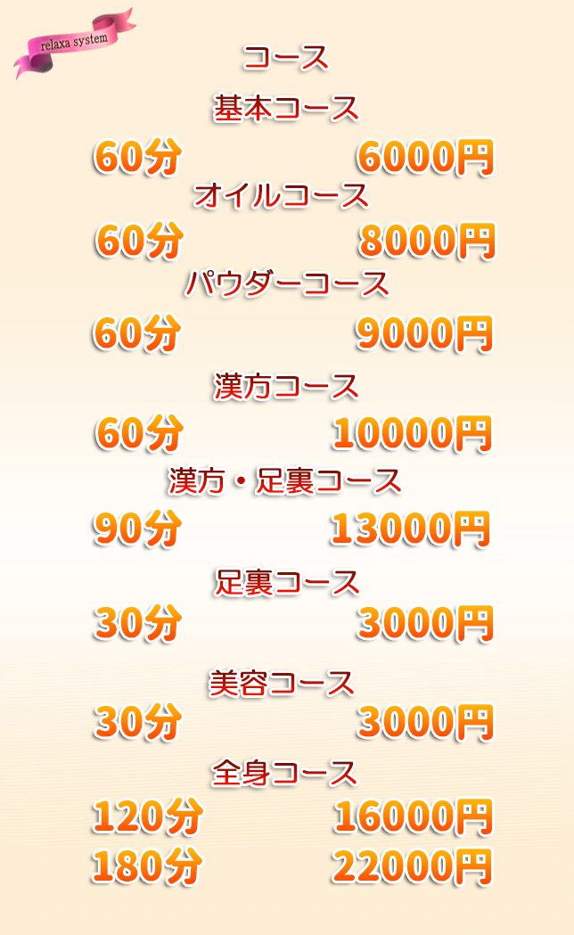 - 90分漢方+足裏コース 13000円→12000円
