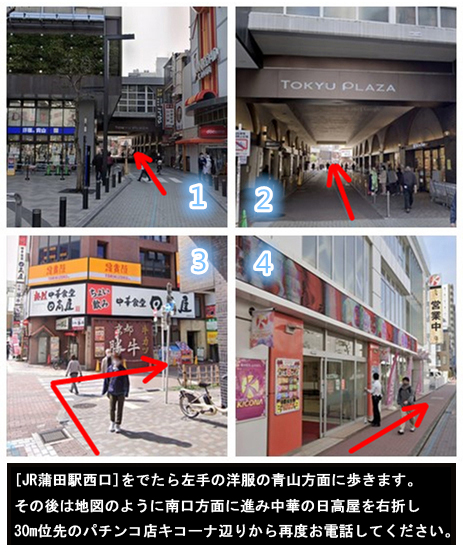蒲田駅西口を出ましたら、店に電話してください。丁寧にご案内させていただきます。