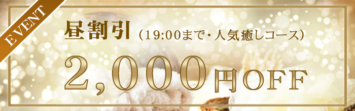 - 昼割引(19:00まで・人気癒しコース) 2,00O円OFF