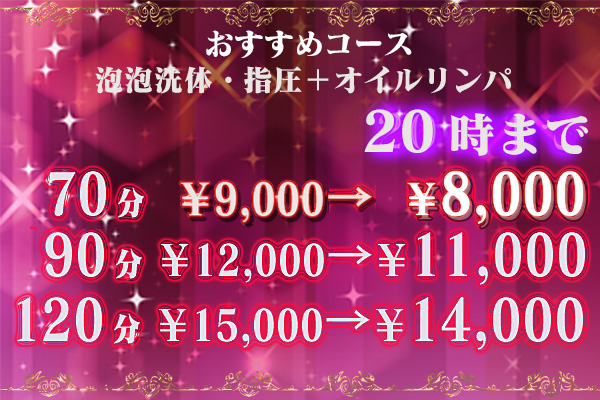 - おすすめコース 泡泡洗体・指圧+オイルリンパ 20時まで