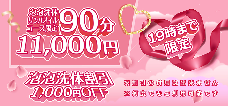 - 泡泡洗体リンパオイルコース限定 90分 11,000円