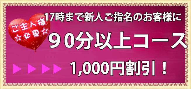 - 17時まで新人ご指名のお客様に90分以上コース 1,000円割引!
