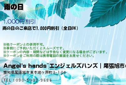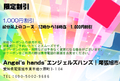 | 店名 | Angel’s hands(エンジェルズハンズ) |