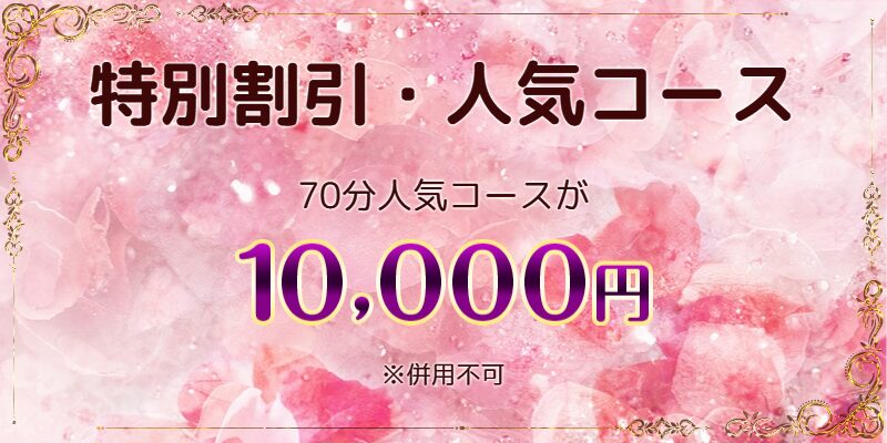 - 特別割引・人気コース 70分人気コースが 10,000円