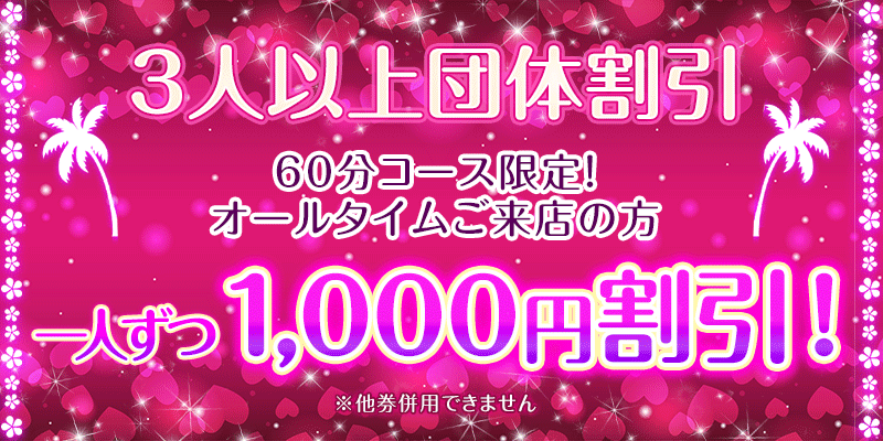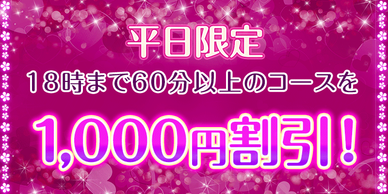 - 平日限定 18時まで60分以上のコースを 1,000円割引!