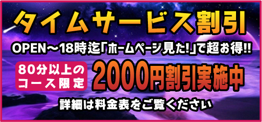 - タイムサービス割引「エスタジア見た!」で2000円割引!!