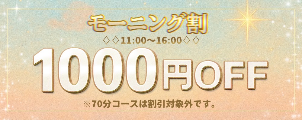 - モーニング割 11:00~16:00まで 1000円割引!!