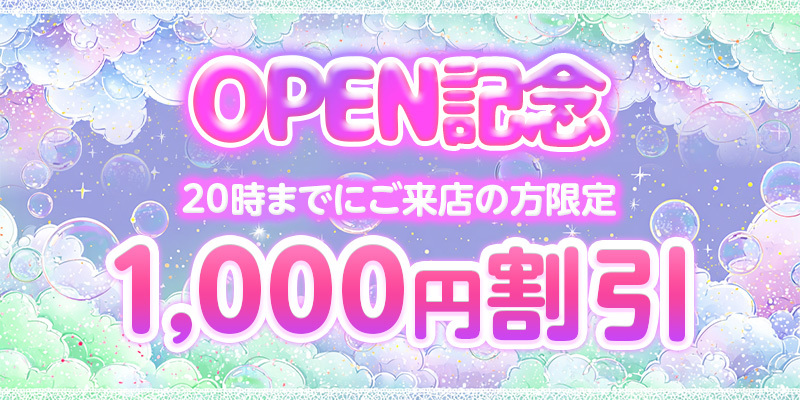 - OPEN記念 20時までにご来店の方限定 1,000円割引