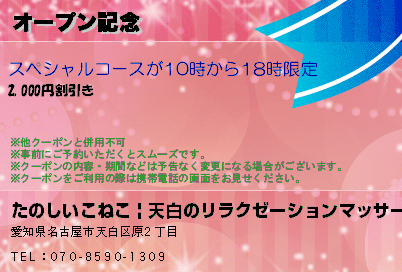 名古屋市 原駅にある名古屋アロマリンパ「たのしいこねこ」の口コミを書いてください。おすすめのコースは30分 / 5,000円~からとなっています営業時間は10:00~LAST ですので070-8590-1309へお気軽にお問い合わせください。