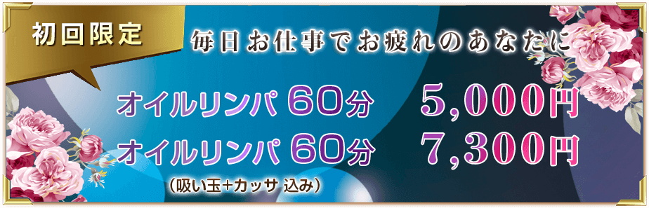 - 「エスタジア見た!」でオイルリンパ 60分 5,000円