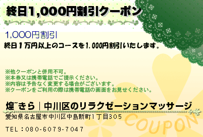 終日1,000円割引クーポン
