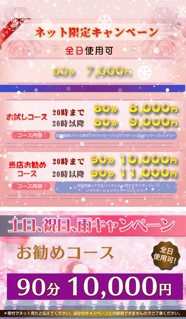 ネット限定キャンペーン 全日使用可 60分 7,000円