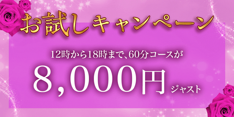 12時から18時まで、60分コースが 8,000円 ジャスト