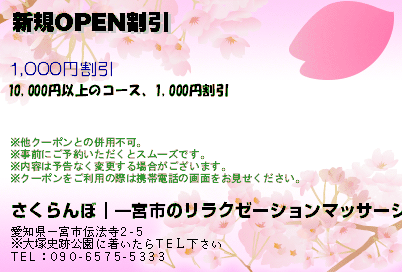 - 新規OPEN割引 10,000円以上のコース、1,000円割引