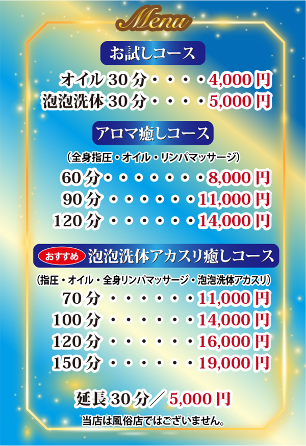 都賀駅からほど近い、プライベート空間を備えたリラクゼーションサロンです。落ち着いた環境の中で、本格的なアロマオイルトリートメントをご堪能いただけます。日々の疲れやストレスをやさしくほぐし、心身ともに深い安らぎへと導くひとときをお届けいたします。ゆったりとお過ごしいただける空間づくりを大切にし、お客様一人ひとりに寄り添った施術をご提供しております。お仕事帰りや気分転換にもお気軽にご利用ください。皆さまのご来店を心よりお待ちしております。