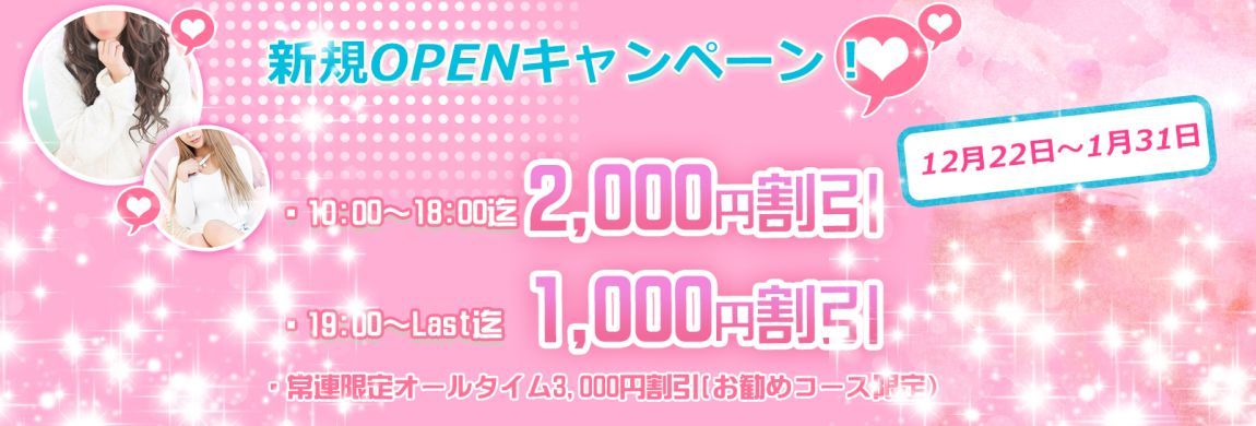- 新規OPENキャンペーン2,000円割引!