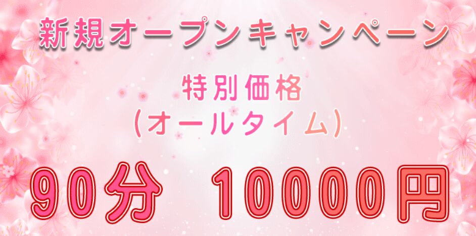 - 新規オープンキャンペーン 特別価格 (オールタイム) 90分 10000円