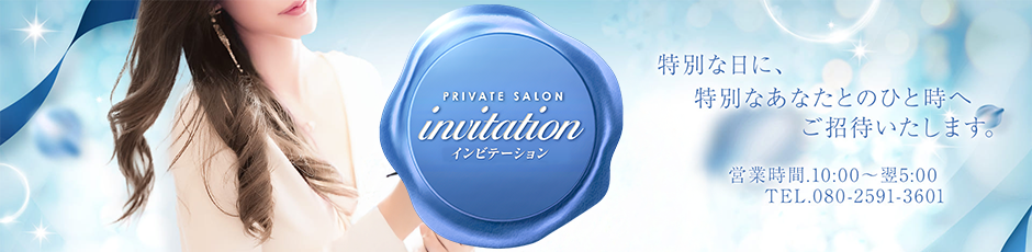 博多駅にお立ち寄りの際には是非、「invitation(インビテーション)」をご利用ください!!贅沢なひと時と最高級の癒しを提供いたします。そしてお客様にご満足いただけますよう、高級感のあるルームのクオリティ+ルームの清掃には力を入れております。 在籍セラピストは30名以上で、年齢総は19歳~25歳くらいの街で見かけるとついつい振り返ってしまうような美女のみを厳選採用しております。