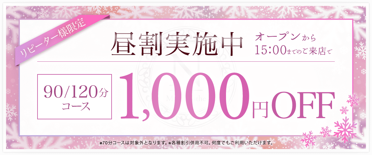 - 昼割実施中 オープンから 15:00までので来店で1,000円OFF