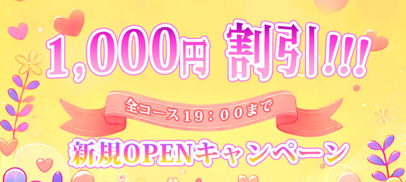 - 新規OPENキャンペーン全コース 19:00まで1000円割引!!