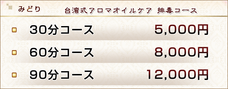 - 特別キャンペーン開催中!排毒60分コース 8,000円