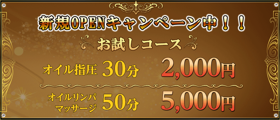 - 新規OPNキャンペーン中!! お試しコース3 オイル指圧 30分 2,000円