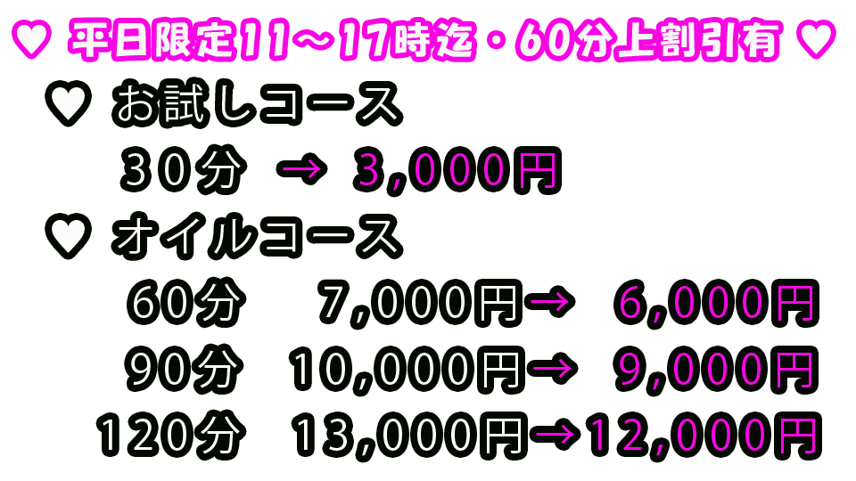 - 平日限定11~17時迄・60分上割引有