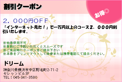桜木町駅より徒歩5分にある桜木町アジアンエステ「ドリーム桜木町」の口コミを書いてください。おすすめのコースは30分 ¥3000〜からとなっています営業時間は12:00〜ラストですので045-341-3580へお気軽にお問い合わせください。