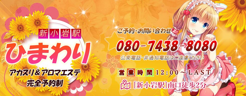 新小岩駅南口より徒歩2分のメンズエステサロン「ひまわり新小岩」 対策も徹底しており、当店セラピストには定期的に抗原検査を行っております。 他では体験したことのない【技術】をご提供します。 美貌と技術を兼ね備えたセラピストが、お客様に究極の癒しを提供いたします。