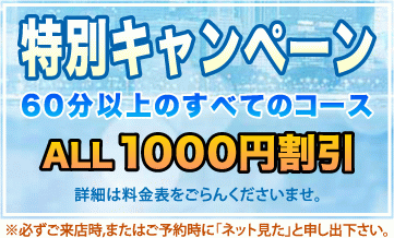 - 特別キャンペーン 60分以上のすべてのコース