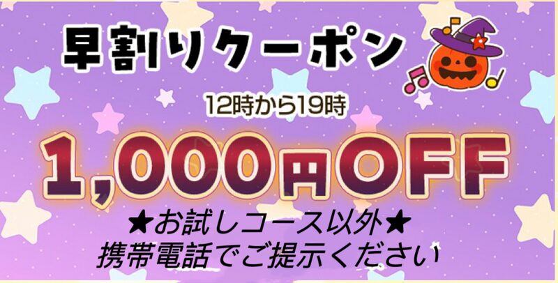 - 早割りクーポン 12時から19時 1,000円割引!!