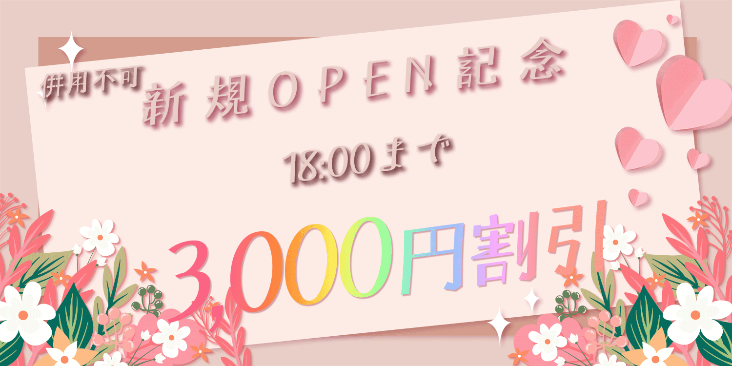 - 新規OPEN記念18:00まで3000円割引!!