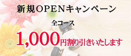 新規OPENキャンペーン 全コース1,000円割り引きいたします