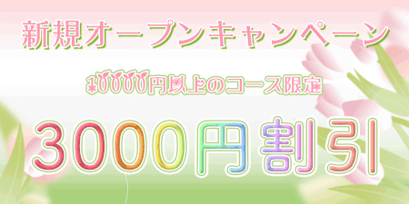新規オープンキャンペーン 10000円以上のコース限定 3000円割引