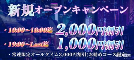 - 新規オープンキャンペーン 10:00~18:00迄 2,000円割引