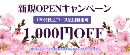 - 新規OPENキャンペーン 120分コース全日利用可 1,000円OFF