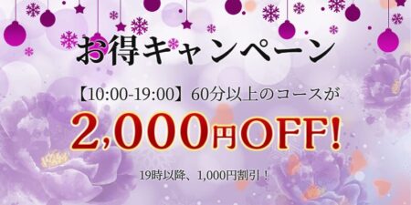 - お得キャンペーン【10:00-19:00】60分以上のコースが2,000円OFF