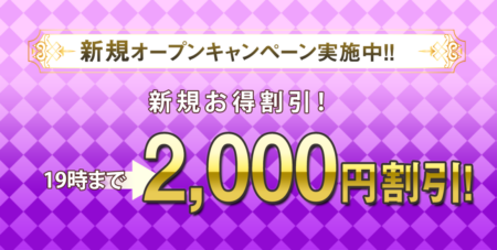 - 新規オープンキャンペーン実施中! 19時まで2,000円割引!